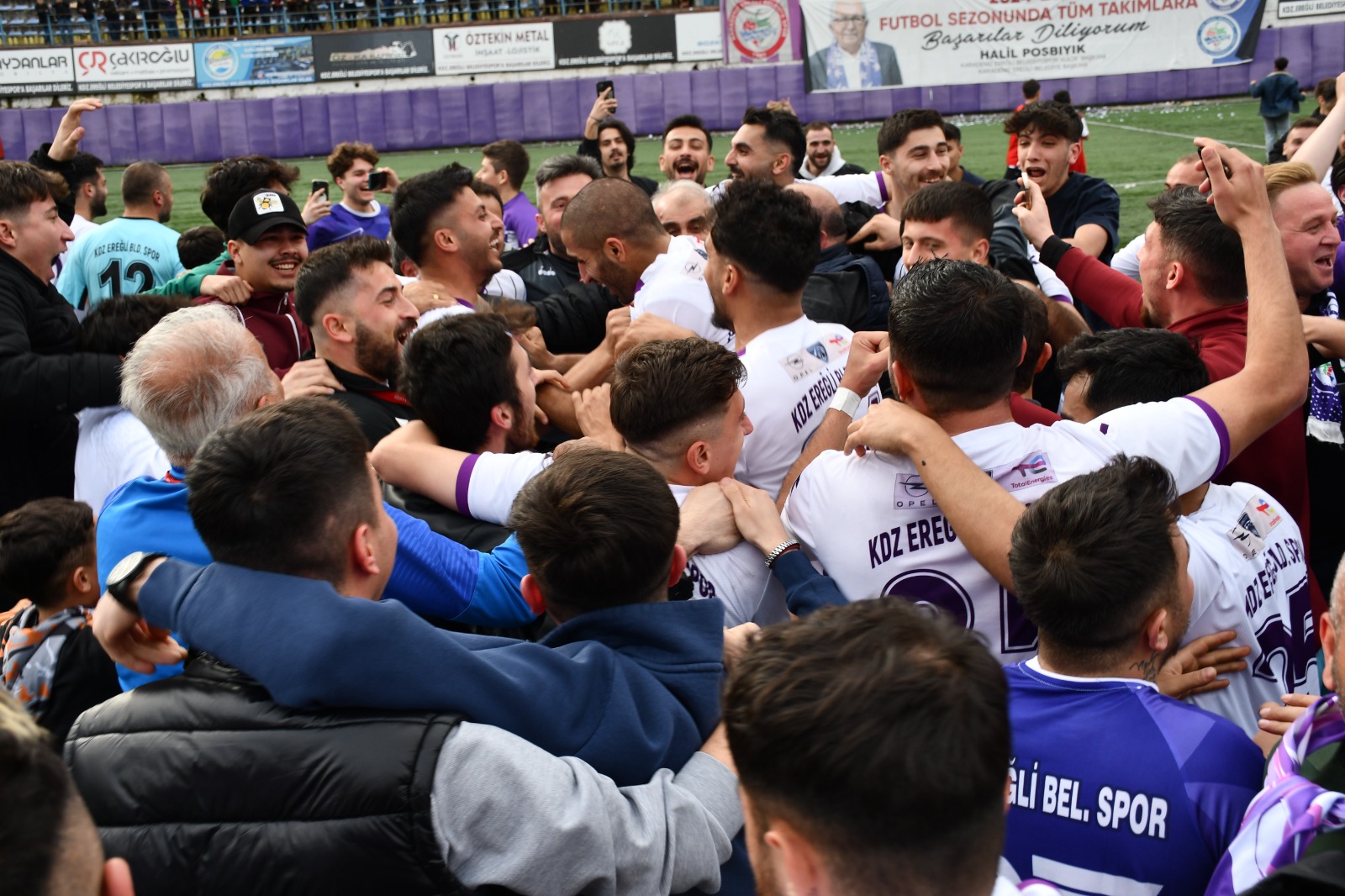 Kdz.Ereğli Belediye ve Kulüp Başkanı Halil Posbıyık yaptığı açıklamada; “25 yıllık hasret sona erdi. Ereğli’de yaşayanlar için çok memnunum. Çünkü 25 seneden beri takımlarını hep desteklediler. Şampiyon olması için ellerinden geleni yaptılar. Çok üzücü günler geçirdik. 25 sene BAL Ligi’nde bu çileyi çektik. Allah’a şükürler olsun bugün bu iş bitti. Bütün futbolcularımızı, teknik adamlara, aynı zamanda taraftarlara ve yönetim kuruluna şükranlarımı sunuyorum. Gerçekten kar kış demeden bu takımı desteklediler. İş adamları maddi manevi desteklerdiler. El ele vererek bu takımı şampiyon olmasında başta Akın Katı ve yönetim ile hep beraber omuz omuza verdik ve bu noktaya getirdik” ifadelerinde bulundu.