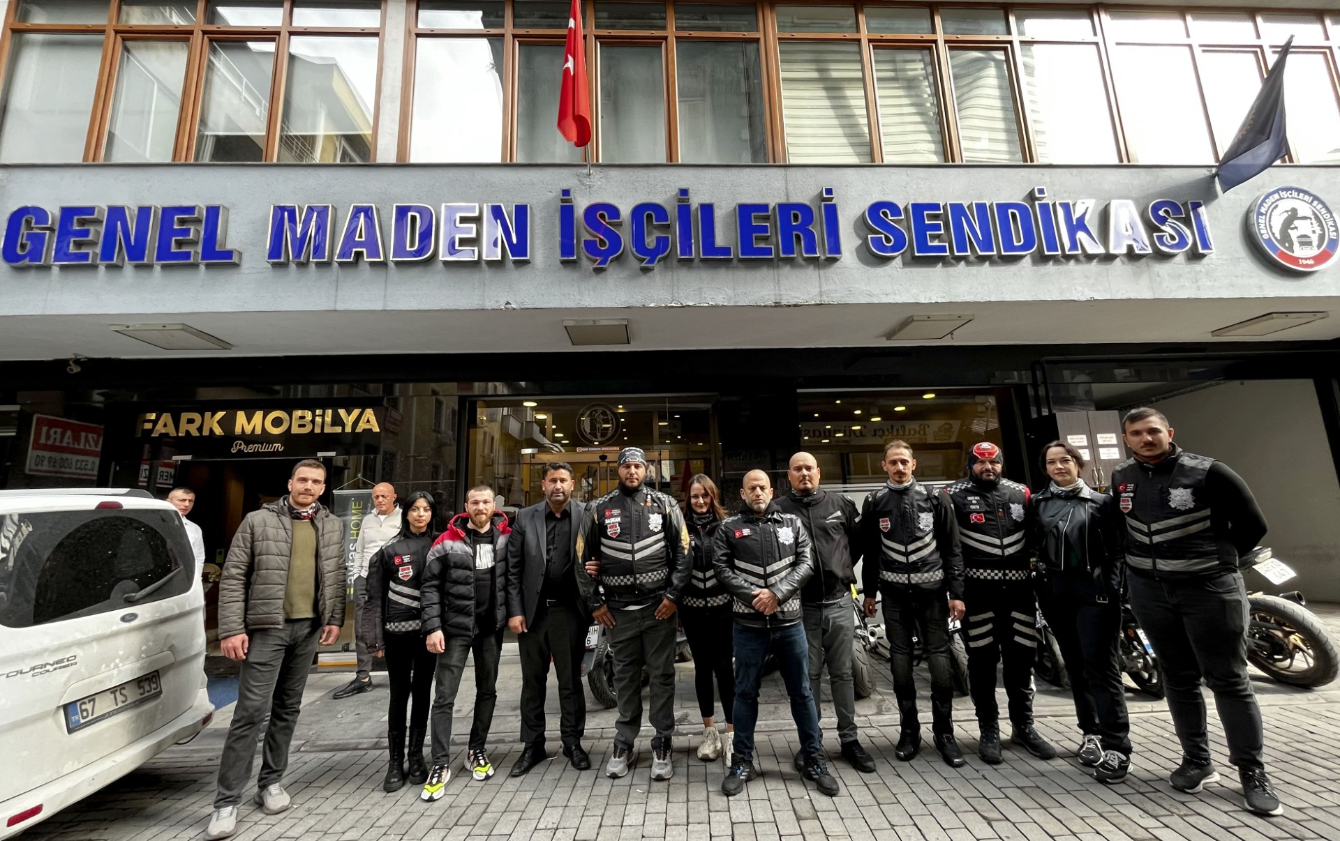 Zonguldak Motosiklet Sürücüleri Derneği (Zonguldak Riders) üyeleri, Genel Maden İşçileri Sendikası (GMİS) Genel Başkanı Hakan Yeşil’i ziyaret ederek Türk bayrağı ile destekleri için plaket takdim etti.