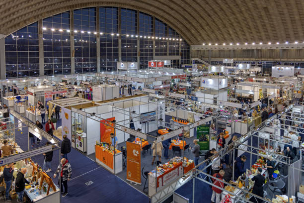 Belgrade, Serbia – November 24, 2022: Aerial View of Ethnic Food and Drinks Fair Traditional National Raw Organic Produce Event.