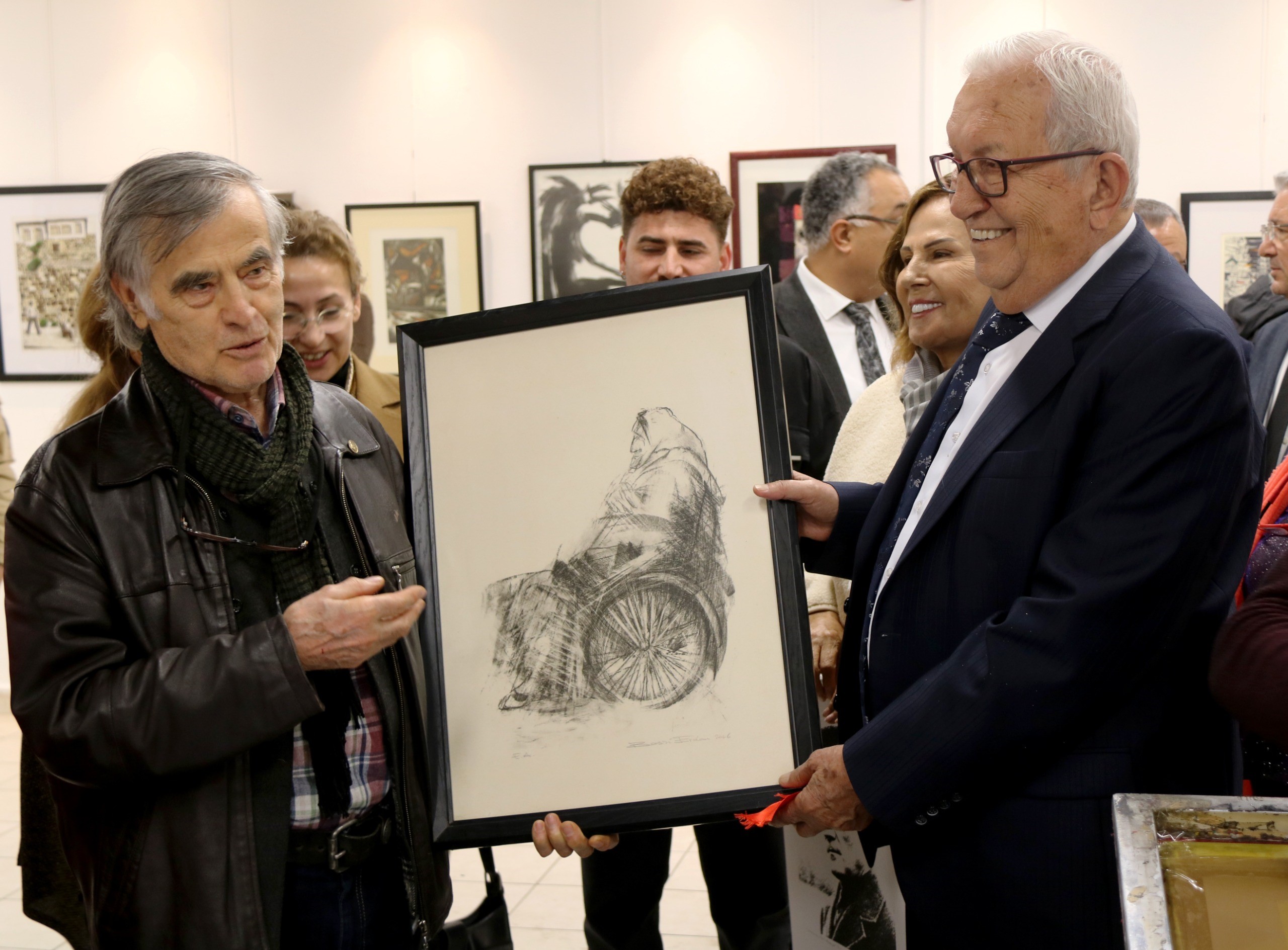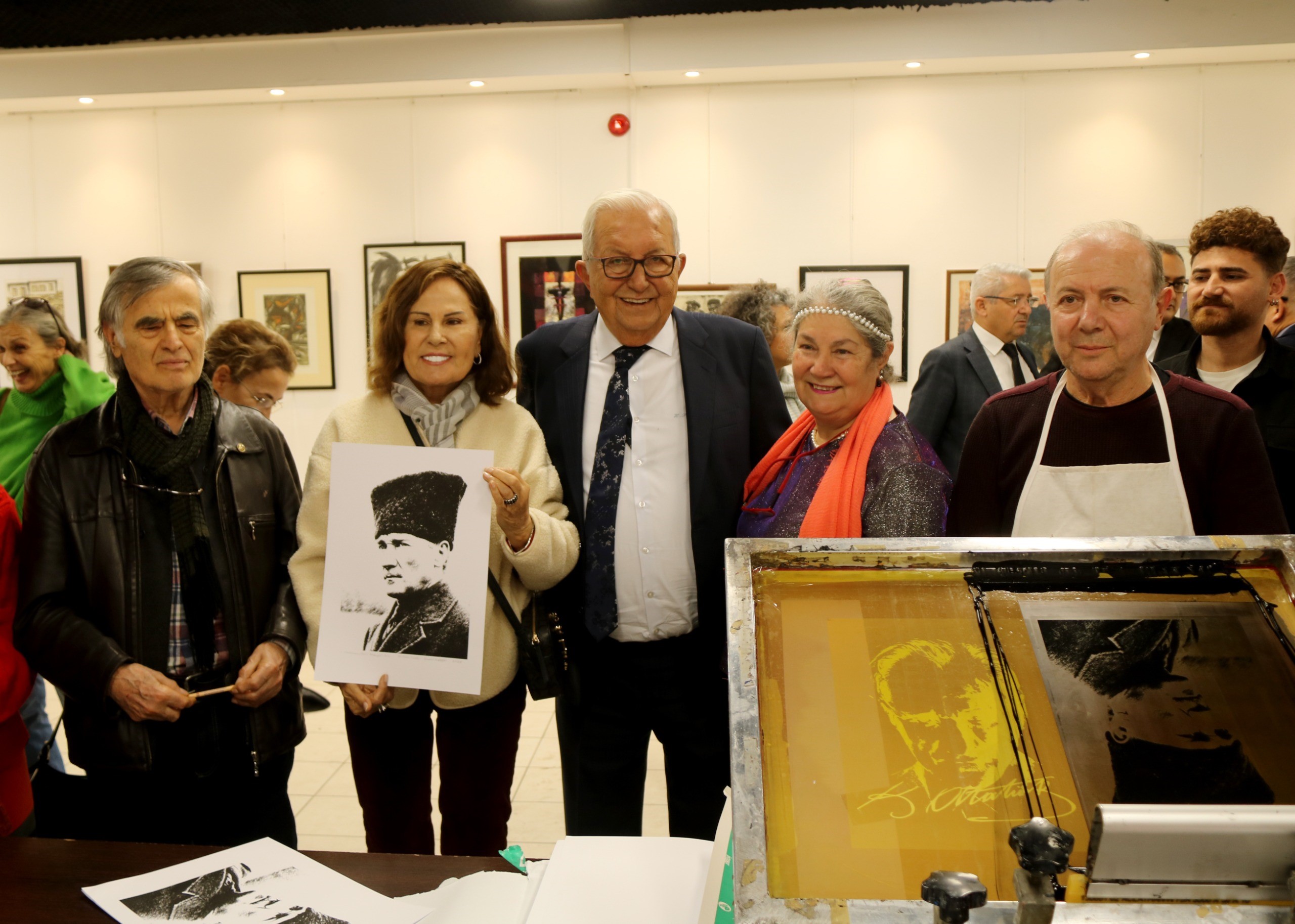 Prof. Dr. Basri Erdem sergiye katılan sanatseverlerede ATATÜRK’ün baskı resmini imzalayarak hediye etti.