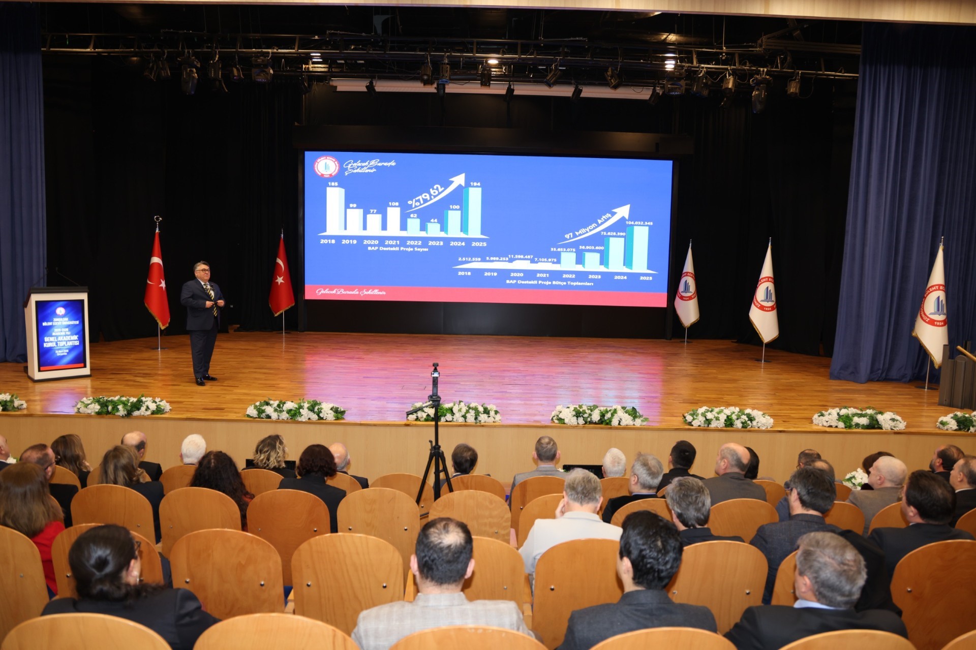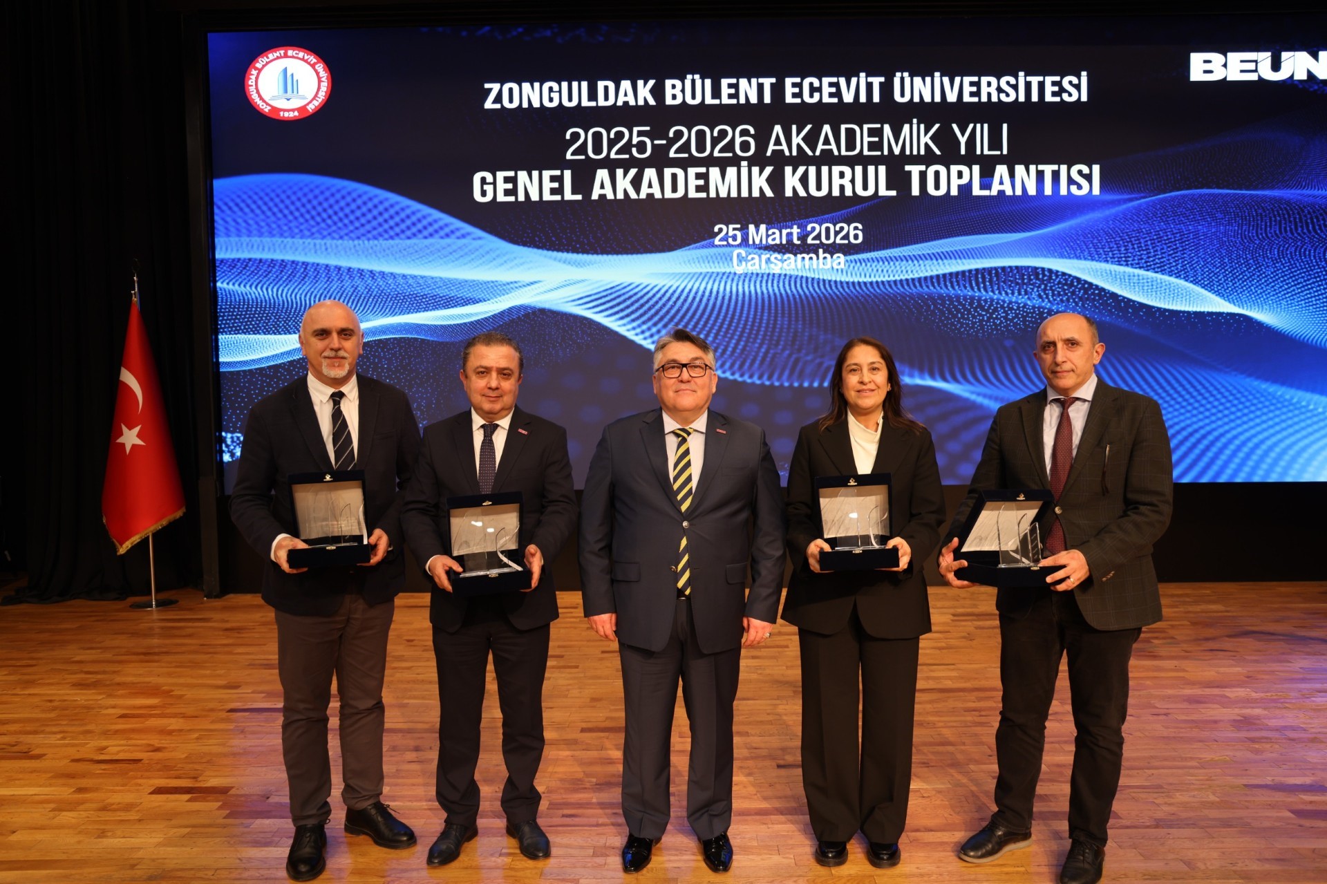Zonguldak Bülent Ecevit Üniversitesi (BEUN), “2025-2026 Akademik Yılı Genel Akademik Kurul Toplantısı” Rektör Prof. Dr. İsmail Hakkı Özölçer başkanlığında gerçekleşti. BEUN’un 2022-2026 yılları arasındaki akademik, bilimsel ve kurumsal gelişiminin kapsamlı şekilde ele alındığı toplantı, aynı zamanda başarıların paylaşıldığı ve gelecek vizyonunun ortaya konulduğu önemli bir platform olarak değerlendirildi.