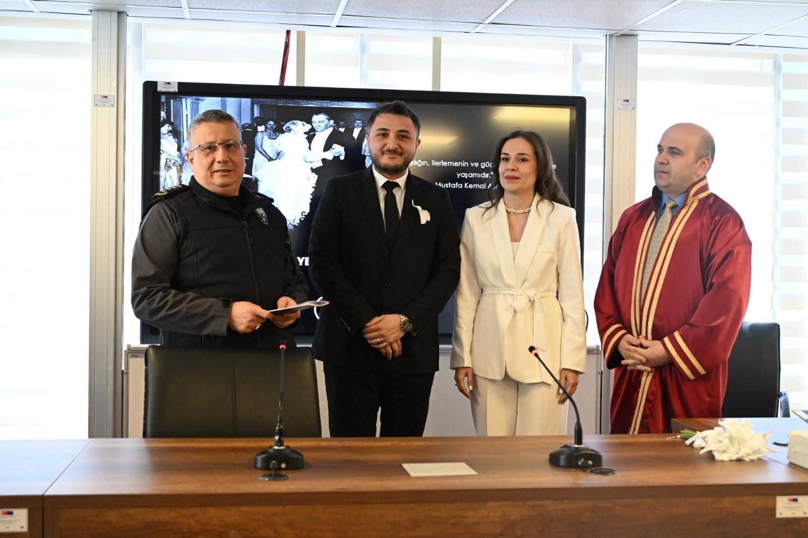 Polis memuru Müberra ve Fatih çifti, 10 Nisan Polis Günü’nde düzenlenen törenle hayatlarını birleştirdi. Nikah, İl Emniyet Müdürü Sinan Ergen ve Müdür Yardımcılarının şahitliğinde kıyıldı.