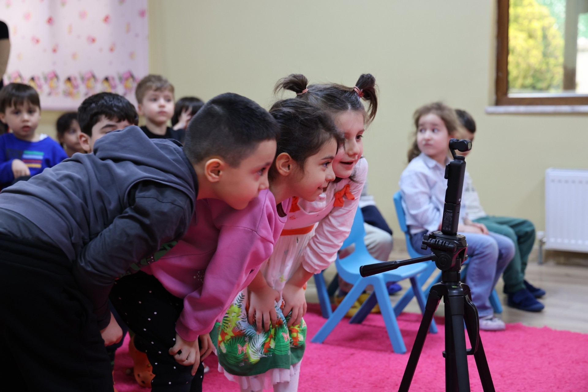Programda 5 yaş grubu öğrencilerinden Ahmet moderatörlük görevini üstlenirken, Mina ise konuk olarak yer aldı. İki minik öğrencinin gerçekleştirdiği soru-cevap bölümünde, 23 Nisan Ulusal Egemenlik ve Çocuk Bayramı’nın tarihî ve millî değerler bağlamında anlamı üzerine samimi bir sohbet gerçekleştirildi. Ahmet’in yönelttiği soruları yanıtlayan Mina, 23 Nisan’ın Atatürk tarafından tüm çocuklara armağan edilen özel bir bayram olduğunu vurgularken; sevgi, mutluluk ve kardeşlik mesajlarıyla programa renk kattı.