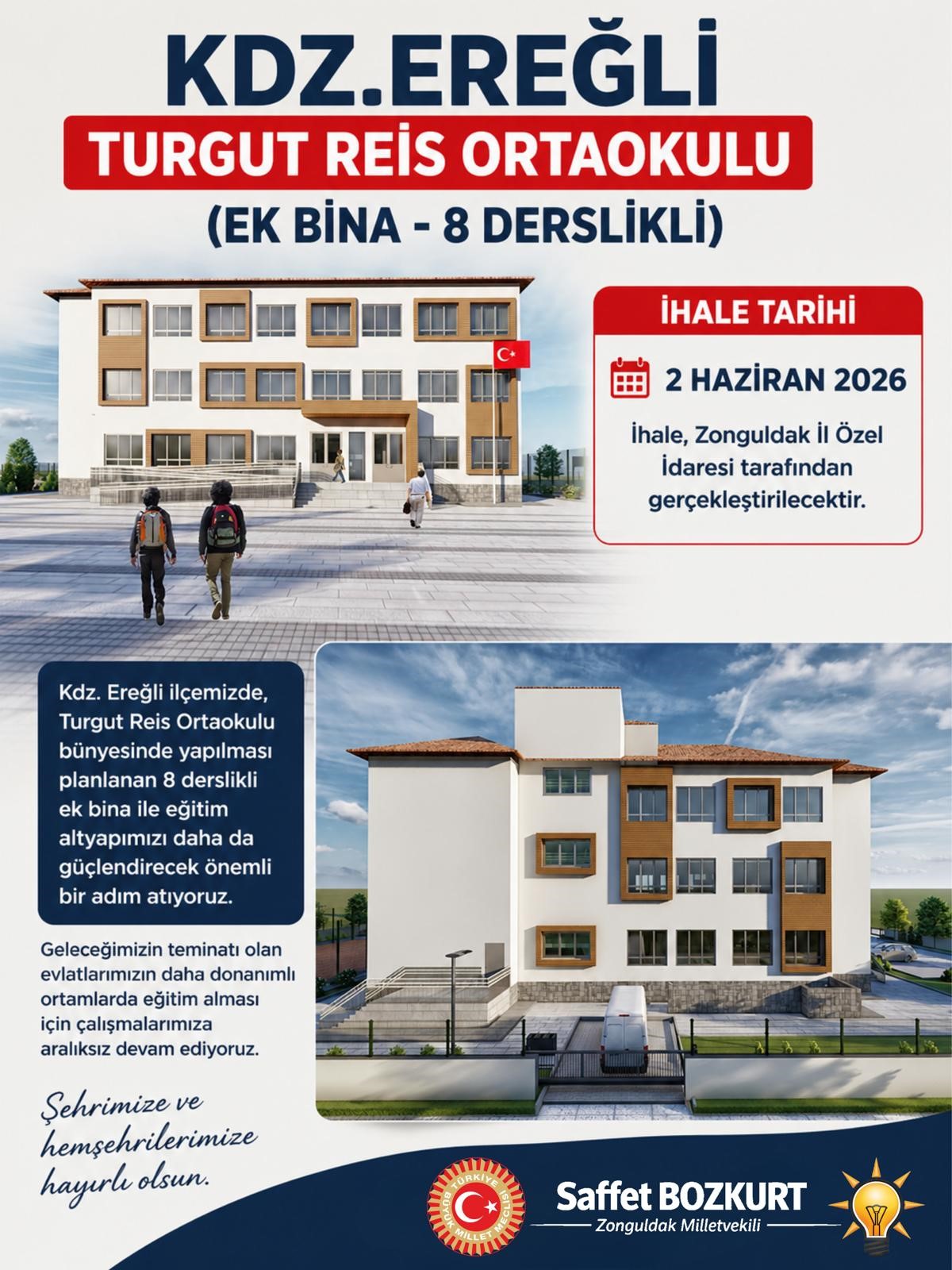Kdz. Ereğli ilçemizde, Turgut Reis Ortaokulu bünyesinde yapılması planlanan 8 derslikli ek bina ile eğitim altyapımızı daha da güçlendirecek önemli bir adım atıyoruz.